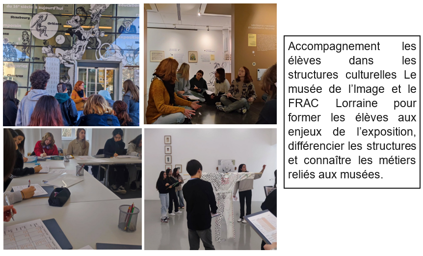 1. LA RENCONTRE : les élèves sont allés visiter le musée de l’Image à Epinal et le FRAC Lorraine à Metz pour découvrir les enjeux de ses structures ainsi que différents métiers du musée.