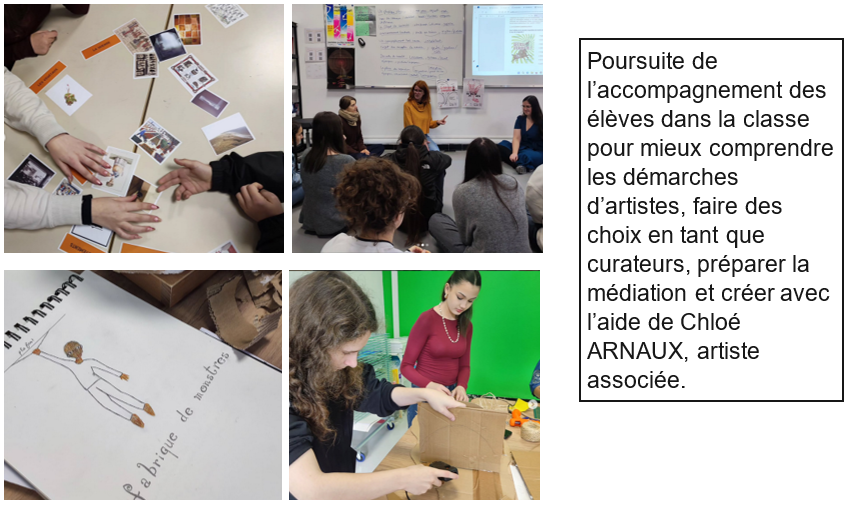 2.LA CONNAISSANCE : les équipes de ces structures sont venues en soutien, dans la salle de classe, pour accompagner les élèves dans le choix d’œuvres afin de constituer les dialogues et les thématiques à développer mais aussi pour les accompagner dans la bonne connaissance des démarches d’artistes, des œuvres et notamment la tradition de l’image populaire d’Epinal.
